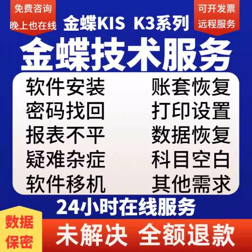金蝶KIS专业版安装账套恢复维护售后技术服务修复故障K3标准迷你