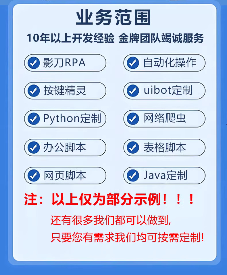 自动化脚本定制软件开发python爬虫影刀rpa机器人办公按键精灵协...¥180.00
